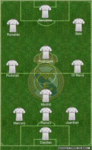 Casillas · Marcelo · Ramos · Juanfran · Modrić · Podolski · Di Maria · Rodriguez · Ronaldo · Bale · Benzema