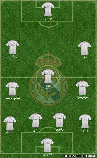 كاسياس · مارسيلو · اربيلوا · بيبي · راموس · تشابي اولنسو · مودريتش · بيرلو · بيل · رونالدو · هيغواين