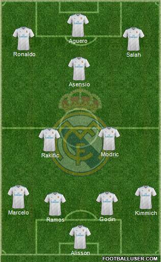 Alisson · Ramos · Godin · Kimmich · Marcelo · Rakitic · Modric · Asensio · Salah · Ronaldo · Aguero