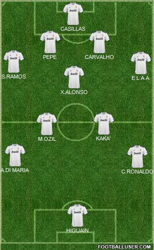 Casillas · Carvalho · Pepe · Arbeloa · Ramos · X.Alonso · Khedira · Ozil · Kaka · Higuain · Ronaldo
