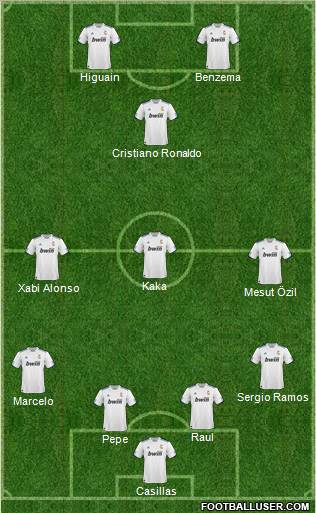 Casillas · Pepe · Raul · Marcelo · Sergio Ramos · Mesut Özil · Xabi Alonso · Kaka · Cristiano Ronaldo · Higuain · Benzema