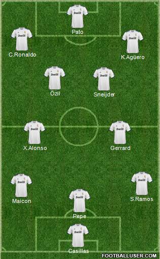 Casillas · Pepe · Maicon · S.Ramos · X.Alonso · Gerrard · Sneijder · Özil · K.Agüero · C.Ronaldo · Pato