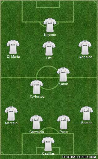 Casillas · Carvalho · Pepe · Marcelo · Ramos · X.Alonso · Şahin · Özil · Ronaldo · Di Maria · Neymar