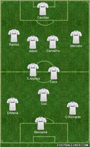 Benzemá · C.Ronaldo · DiMaria · Ozil · Lass · X.Alonso · Albiol · Carvalho · Marcelo · Ramos · Casillas