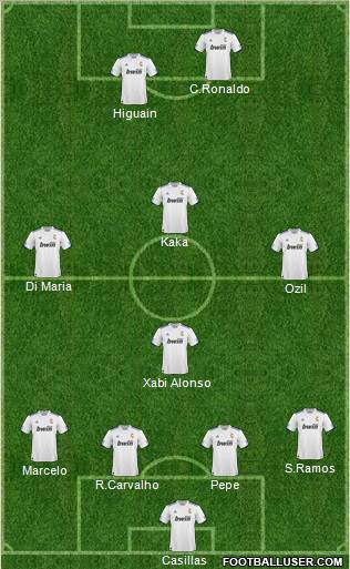 Casillas · R.Carvalho · Pepe · Marcelo · S.Ramos · Xabi Alonso · Ozil · Di Maria · Kaka · Higuain · C.Ronaldo