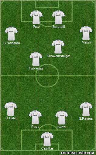Casillas · Skrtel · Pepe · S.Ramos · G.Bale · Fabregas · Schweinsteiger · C.Ronaldo · Messi · Pato · Balotelli