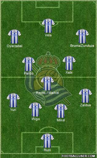 Rulli · Reyes · Íñigo · Elustondo · Yuri · Illarramendi · Rubén Pardo · Vela · Xabi Prieto · Oyarzabal · Jonathas