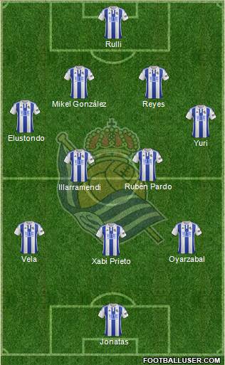 Rulli · Íñigo · D.Reyes/Mikel · Yuri · Aritz · Illarramendi · Pardo · X.Prieto · Oyarzábal · Vela · Jonathas