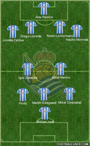 1. Remiro · 5. Zubeldia · 24. LeNormand · 15. Sagnan · 12. Aihen · 22. Barrenetxea · 16. Guevara · 8. MikelMerino · 10. Oyarzabal · 7. Portu · 9. WilliamJosé