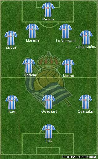 Alex Ramiro · Le Normand · Zubeldia · Diego Llorente · Mikel Merino · Illaramendi · Monreal · Zaldua · Oyarzabal · Portu · Willian Jose