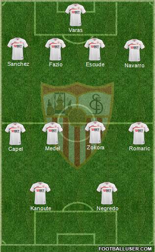 Palop · Caceres · Escude · Dabo · F.Navarro · Zokora · Rakitic · Navas · Perotti · Luis Fabiano · Kanoute