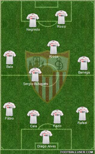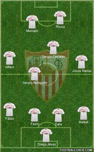 Negredo · Kanoute · Navas · Perotti · Rakitic · Medel · Cazeres · Fernando Navarro · Alexis · Escude · Javi varas