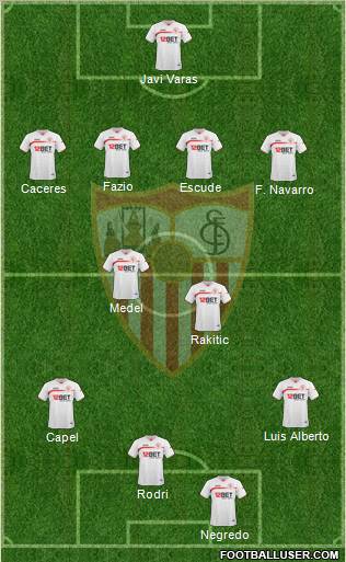 NEGREDO · ROMARIC · RAKITIC · PEROTTI · CAPEL · ZOKORA · NAVARRO · ESCUDÉ · CÁCERES · FAZIO · VARAS