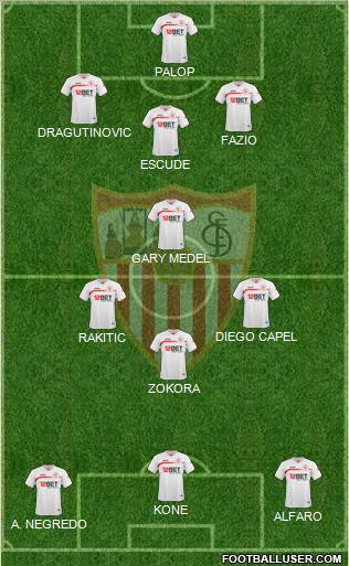 Palop · Cácares · Escudé · Dabo · F. Navarro · Zokora · Jésus Navas · Capel · Herrera · Fabiano · Negredo