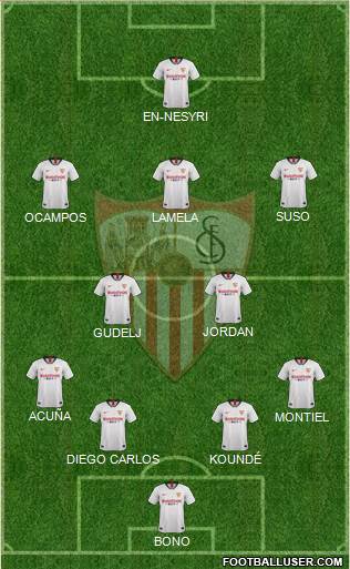 BONO · D. CARLOS · KOUNDÉ · ACUÑA · MONTIEL · RAKITIC · JORDAN · OCAMPOS · RODRIGUEZ · LAMELA · EN-NESYRI