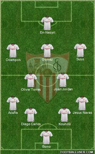 Bono · Koundé · Diego Carlos · Reguilón · Jesús Navas · Fernando · Jordán · Banega · Ocampos · Suso · De Jong