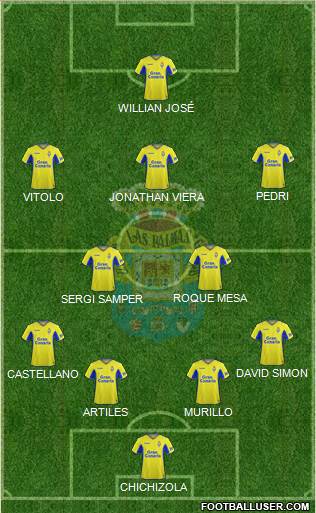 CHICHIZOLA (Raúl) · AYTHAMI (-) · LEMOS (D.García) · DE LA BELLA (Dani C.) · XIMO (D.Simón) · ROQUE MESA (Hernán) · VICENTE (Peñalba) · VIERA (Tana) · VITOLO (Momo) · RUBÉN CASTRO (Srnic) · ARAUJO (Rafa Mir)