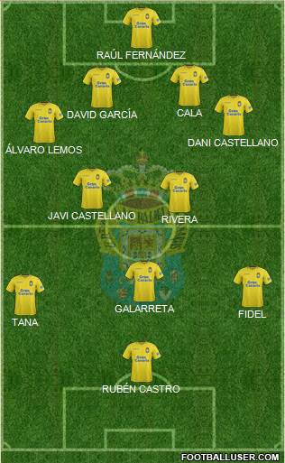 RAÚL FERNÁNDEZ · JUAN CALA · DAVID GARCÍA · DE LA BELLA · ÁLVARO LEMOS · MAIKEL MESA · TIMOR · FIDEL · RAFA MIR · TANA · RUBÉN CASTRO