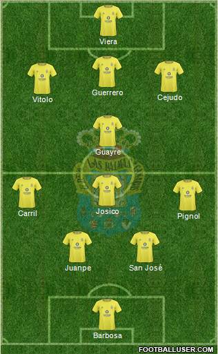 7.Perea · 21.Jonathan Viera · 23.Armiche · 20.Vitolo · 22.David González · 24.Vicente Gómez · 12.Aythami · 3.Ruyman · 2.Pignol · 5.David García · 1.Barbosa