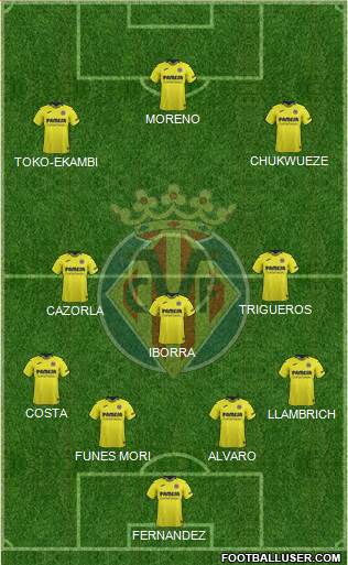 Reina/Areola · Musacchio/Funes Mori · Bailly/Gabriel · Mario/Miguelón · Costa/Pedraza · Trigueros/Cazorla · Bruno/Iborra · Fornals · Valero/Samu · Bakambu/Ekambi · Gerard/Vietto