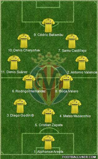 Asenjo · Funes · Alvaro · Jaume · Mario · Trigueros · Caseres · Pedraza · Cazorla · Fornals · Gerard