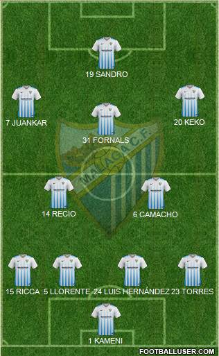 Kameni · Llorente · Luis Hernández · Ricca · Luis Muñoz · Camacho · Recio · Pablo Fornals · Jony · Ontiveros · Sandro Ramírez