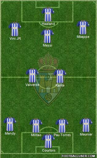 Courtois · Militao · Pau Torres · Meunier · Mendy · Kante · Valverde · Messi · Vini JR · Mbappe · Haaland
