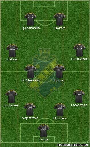 27. Ivan Turina · A. Alm · 45. D. Majstorović · 3. P. Karlsson · 4. E. Johansson=c · 16. M. Lorentzson · 7. H. Daníelsson · 15. R. Quaison · 9. M. Mutumba · 10. C. Borges · 11. L. Atakora · 22. K. Karikari