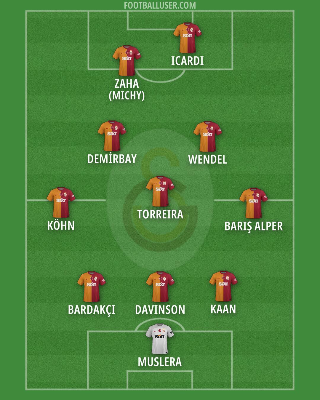 Günay · Jelert · Nelsson · Abdülkerim · Berkan · Torreira · Kerem · Mertens · Sara · Yunus · Sallai