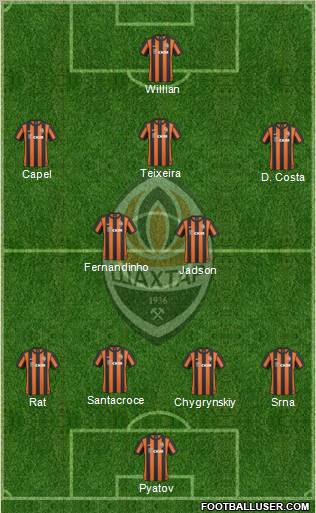 30. Pyatov · 27. Chygrynskiy · 44. Rakitskiy · 33. Srna (c) · 26. Raţ · 3. Hübschman · 7. Fernandinho · 10. Willian · 20. D. Costa · 8. Jádson · 9. L. Adriano