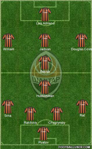 30. Pyatov · 44. Rakitskiy · 32. Ishchenko · 14. Kobin · 33. Srna (c) · 22. Mkhitaryan · 7. Fernandinho · 10. Willian · 11. Eduardo · 8. Jádson · 99. M. Moreno